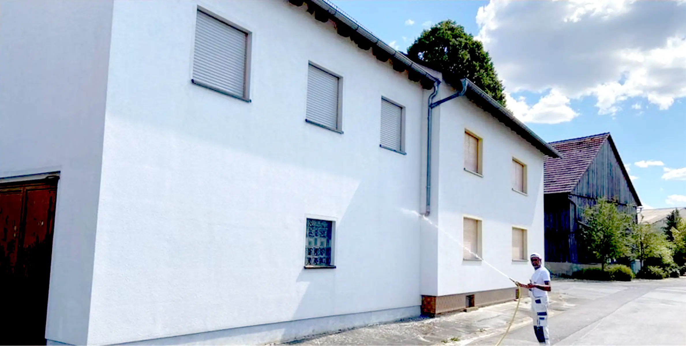 Onze gevel was behoorlijk vuil geworden. Waar ik dacht dat er geschilderd diende te worden was reinigen voldoende.